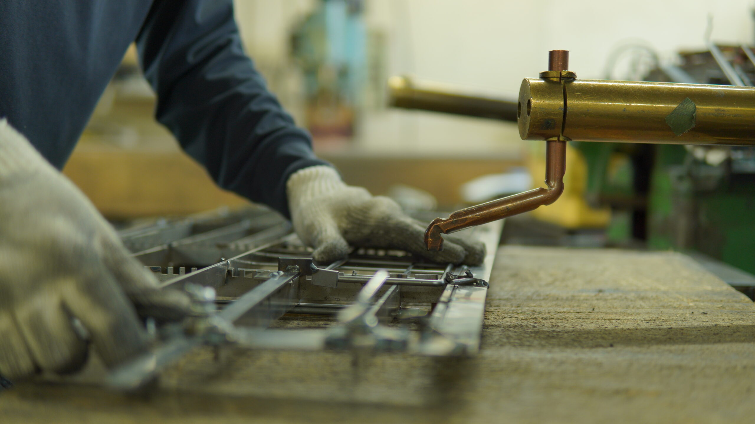 仕事の中核は、一枚の鉄板やパイプを図面通りの製品へと昇華させる金属加工です。まずはレーザー加工機などを駆使した精密な切断・穴あけ、そして金属を自在に操る曲げ加工からスタート。一つひとつの工程を経て、部材は意味のあるカタチへと変わります。製造の要となる「溶接」では、部品同士を熱で接合し、立体へと組み上げます。火花の中で鉄をつなぐ技術は、まさに一生モノのスキル。仕上げの研磨を経て完成した製品は、商業空間の一部として輝き続けます。 大量生産のライン作業とは一線を画す、オーダーメイドに近いモノづくり。「毎日違う課題」に向き合い、飽きることなく技術を磨き続けられる環境です。